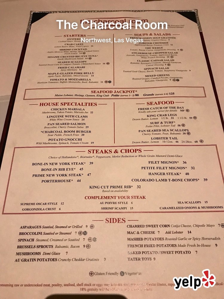 Welcome to The Charcoal Room, a premier seafood and steakhouse located at 4949 N Rancho Dr, Las Vegas, NV. This elegant dining destination excels in providing high-quality meat and seafood dishes, ensuring a memorable culinary experience. Their signature offerings include the tantalizing New York Creekstone Farms prime steak paired with succulent sides like Shrimp Scampi and Sea Scallops.